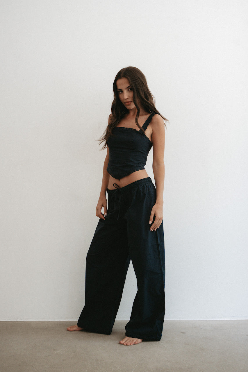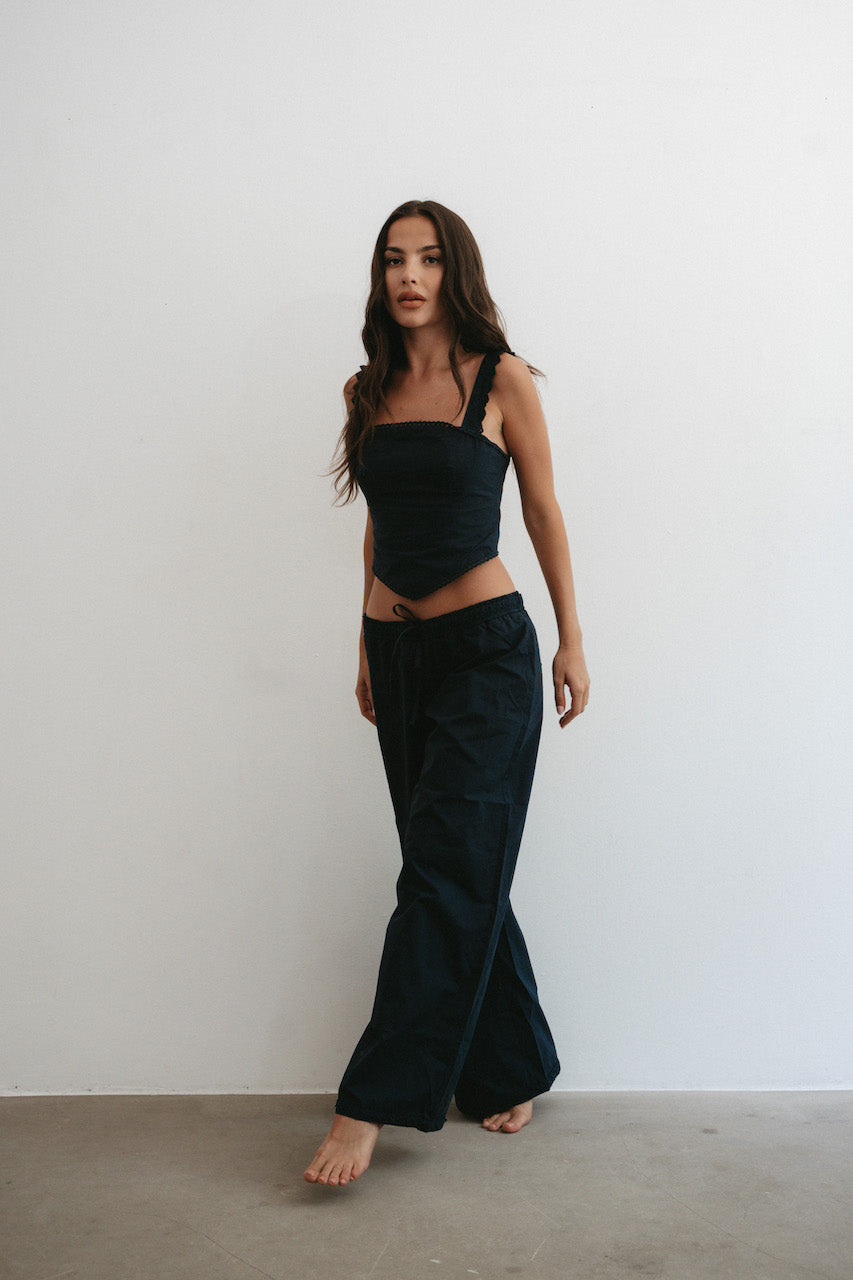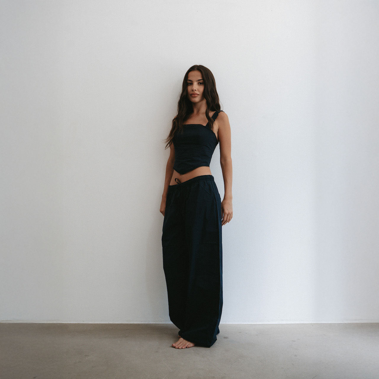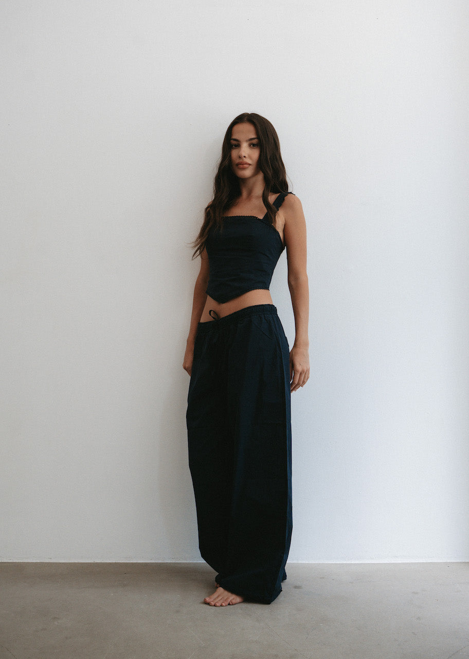 Impeccably tailored, this navy cotton Broderie Top sculpts the silhouette with architectural precision. The form-fitting design showcases intricate eyelet craftsmanship against sun-bronzed skin—a study in summer minimalism. An essential canvas for statement accessories or worn alone as testament to understated luxury.