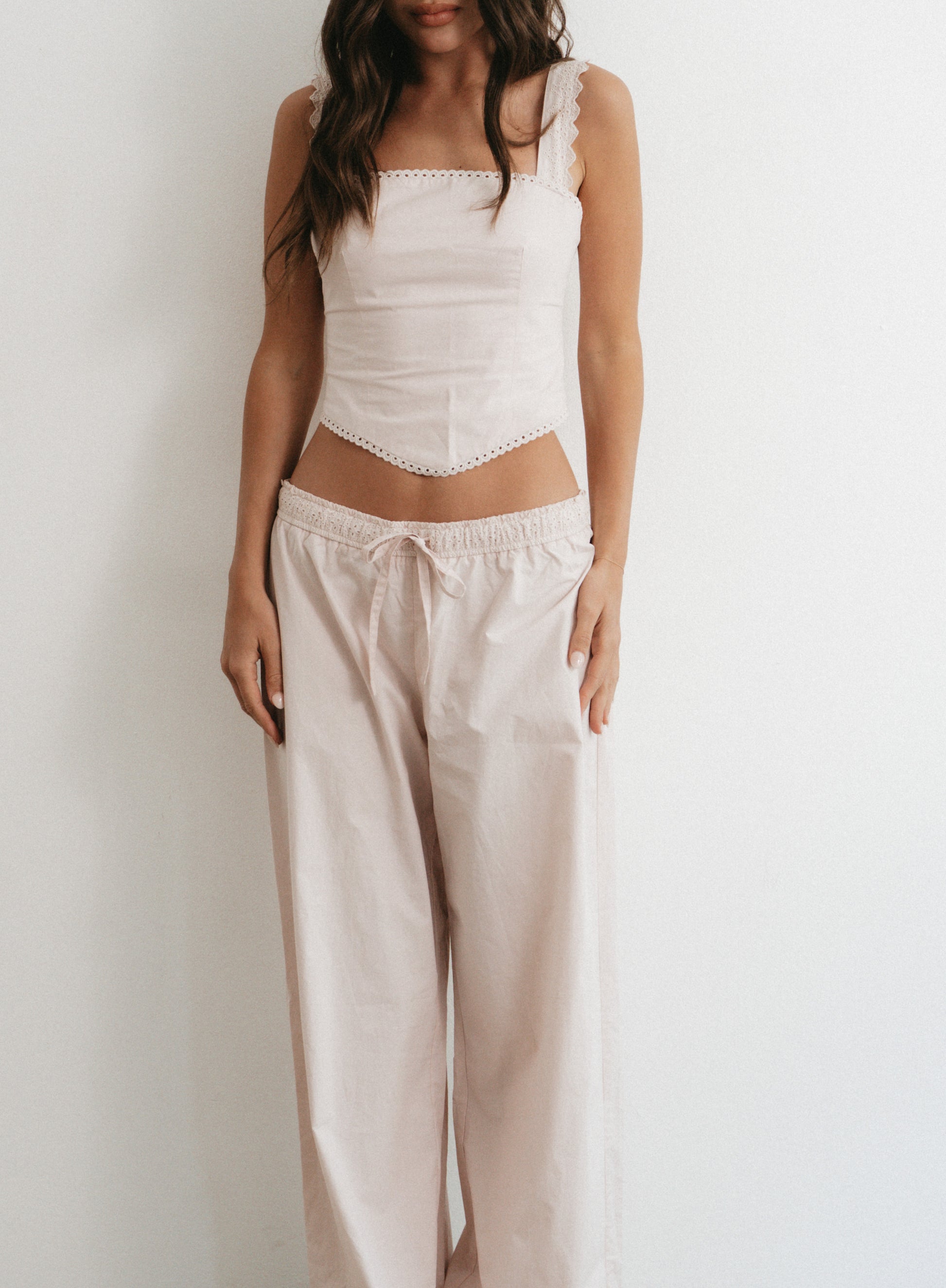 Impeccably tailored, this pink cotton Broderie Top sculpts the silhouette with architectural precision. The form-fitting design showcases intricate eyelet craftsmanship against sun-bronzed skin—a study in summer minimalism. An essential canvas for statement accessories or worn alone as testament to understated luxury.