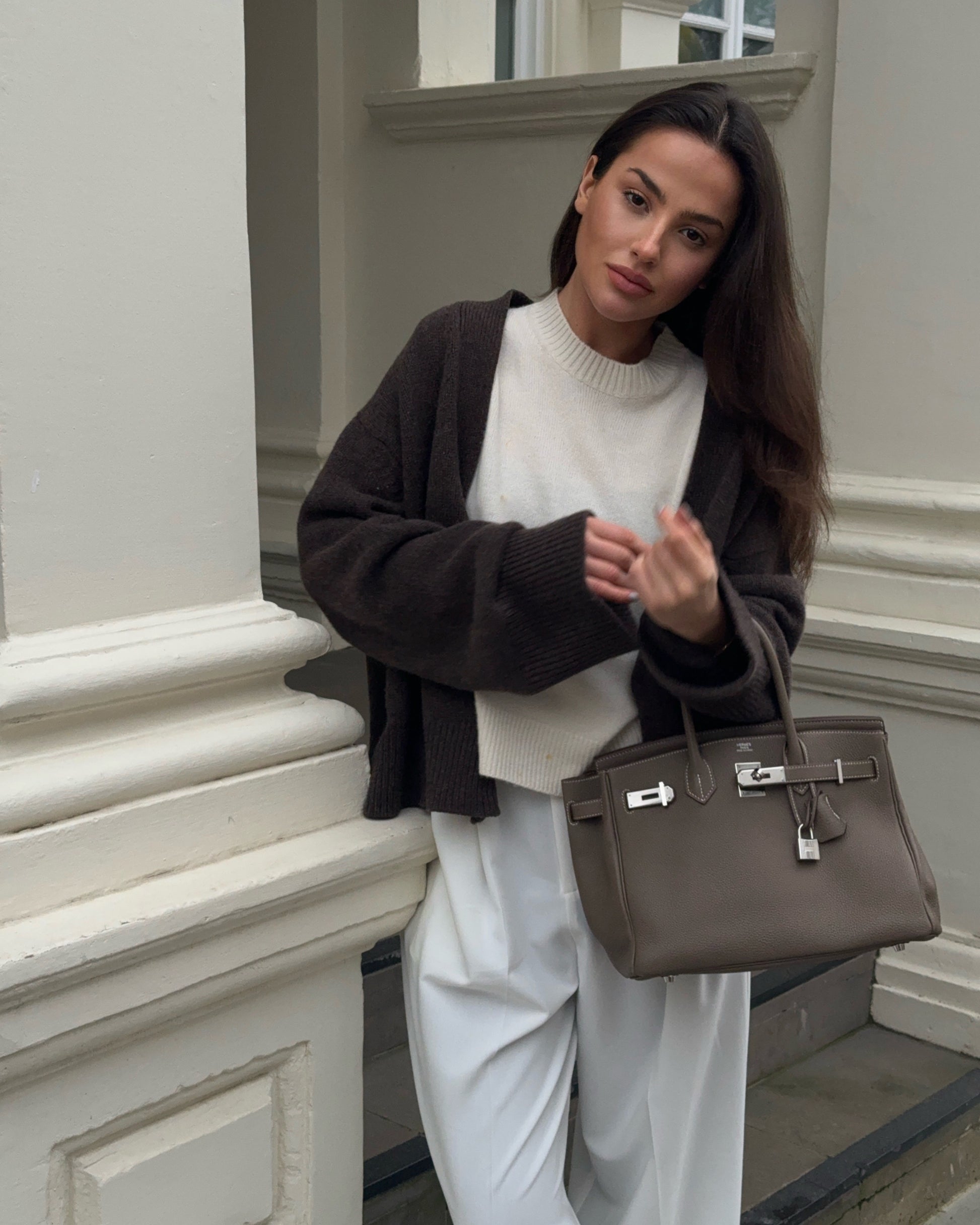 A white cashmere sleeveless vest exudes elegance with its soft, plush fabric and minimalist design. It drapes beautifully, offering a flattering fit without sleeves. Luxuriously smooth and lightweight, it adds warmth and sophistication to any outfit, perfect for both casual and formal occasions.