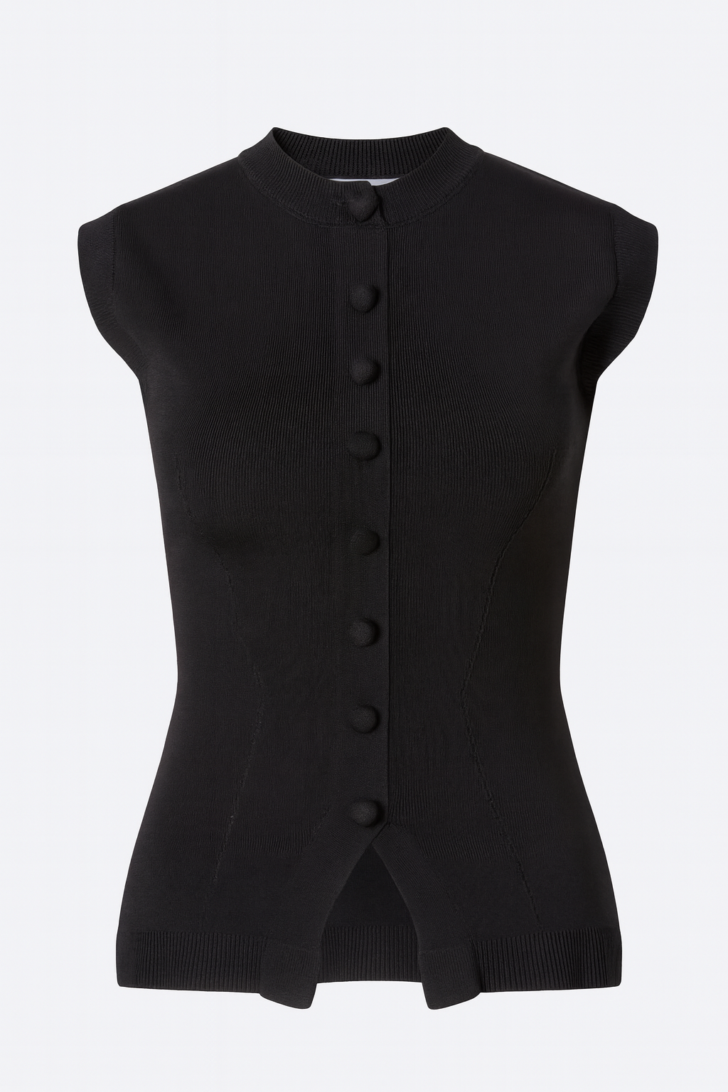 This knitted fitted top hugs your curves with a soft viscose blend for a perfectly flattering fit. The playful heart-shaped button adds a flirty touch, making it sexy yet elegantly charming. Ideal for both casual outings and dressier evenings, it brings a confident and fun vibe to your wardrobe.