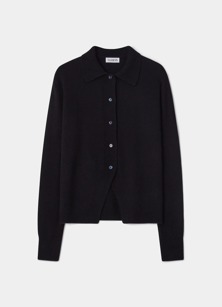 CLOEYS cardigan with The Emoji rocket intarsia in the back. Composed of 30% cashmere and 70% wool. The fit is oversized with CLOEYS classic thumb cut out detail.