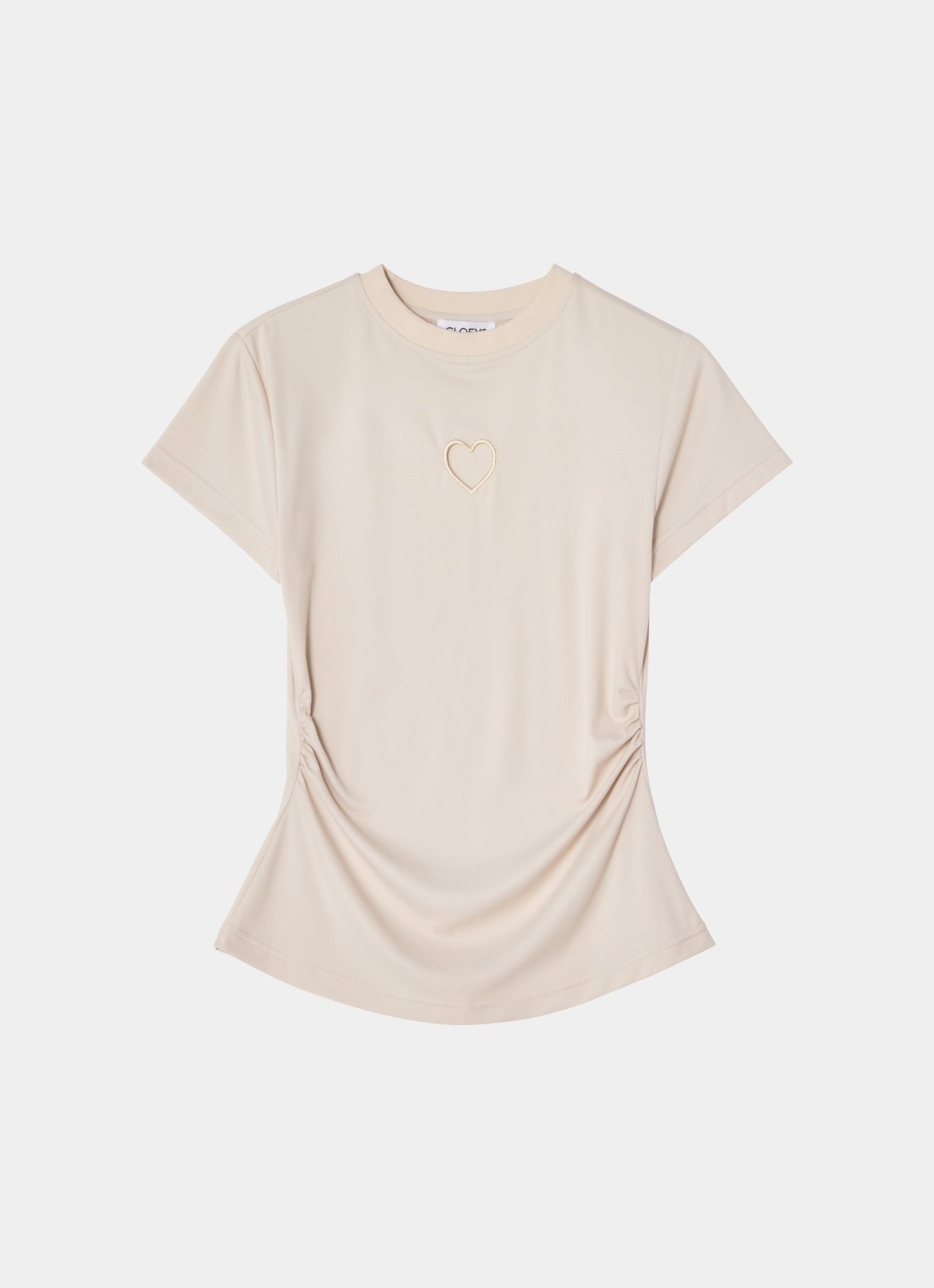 This chic beige fitted t-shirt is designed to hug your curves with a flattering, snug fit that feels effortlessly stylish. The playful heart cut-out detail at the chest adds a touch of flirty charm, making it the perfect piece to elevate casual outfits with a bold yet understated vibe.